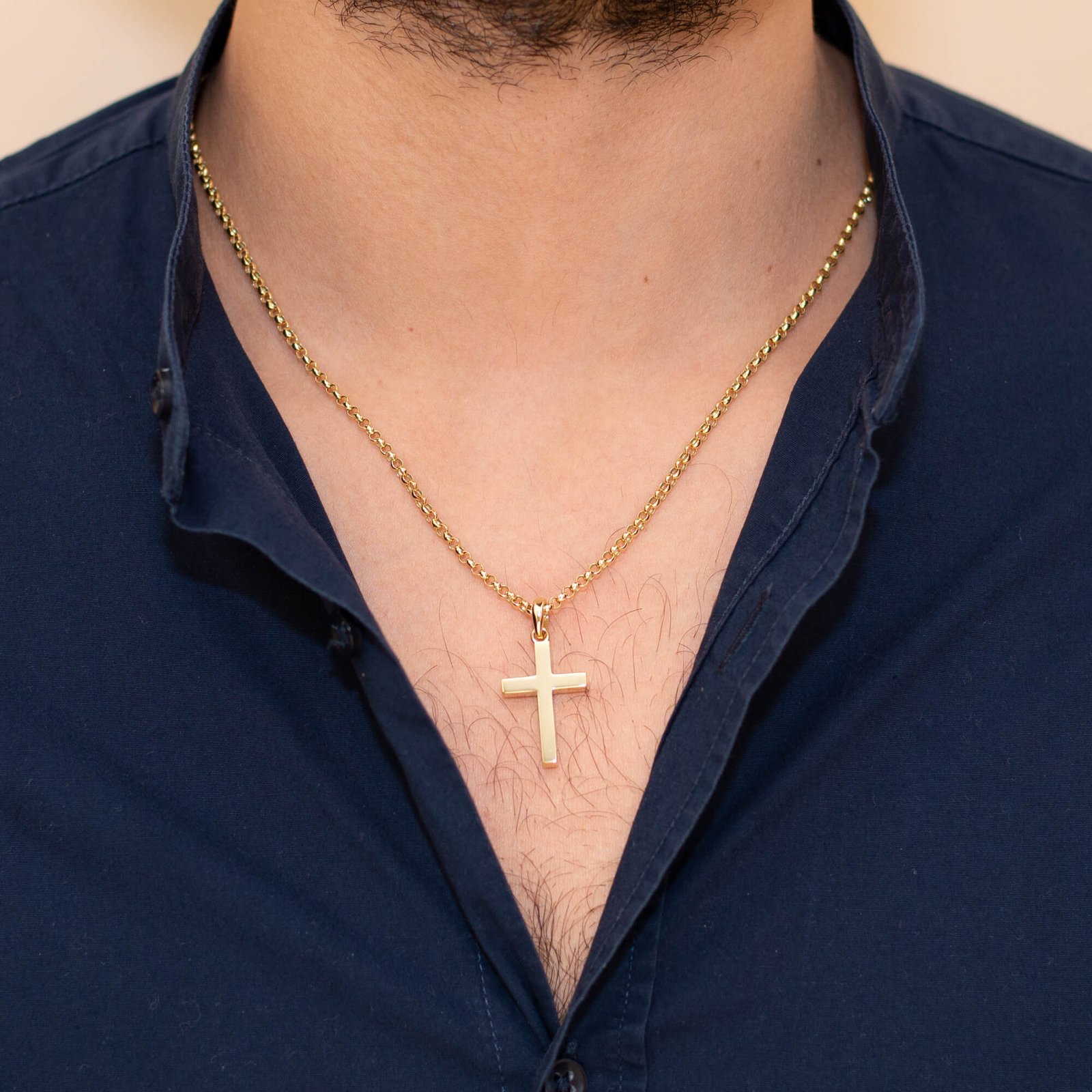 Λιτός και κλασσικός, αυτός ο σταυρός από κίτρινο χρυσό 18 καρατίων είναι η πιο σίγουρη επιλογή για βάπτιση αγοριού αλλά και ανδρικό δώρο.