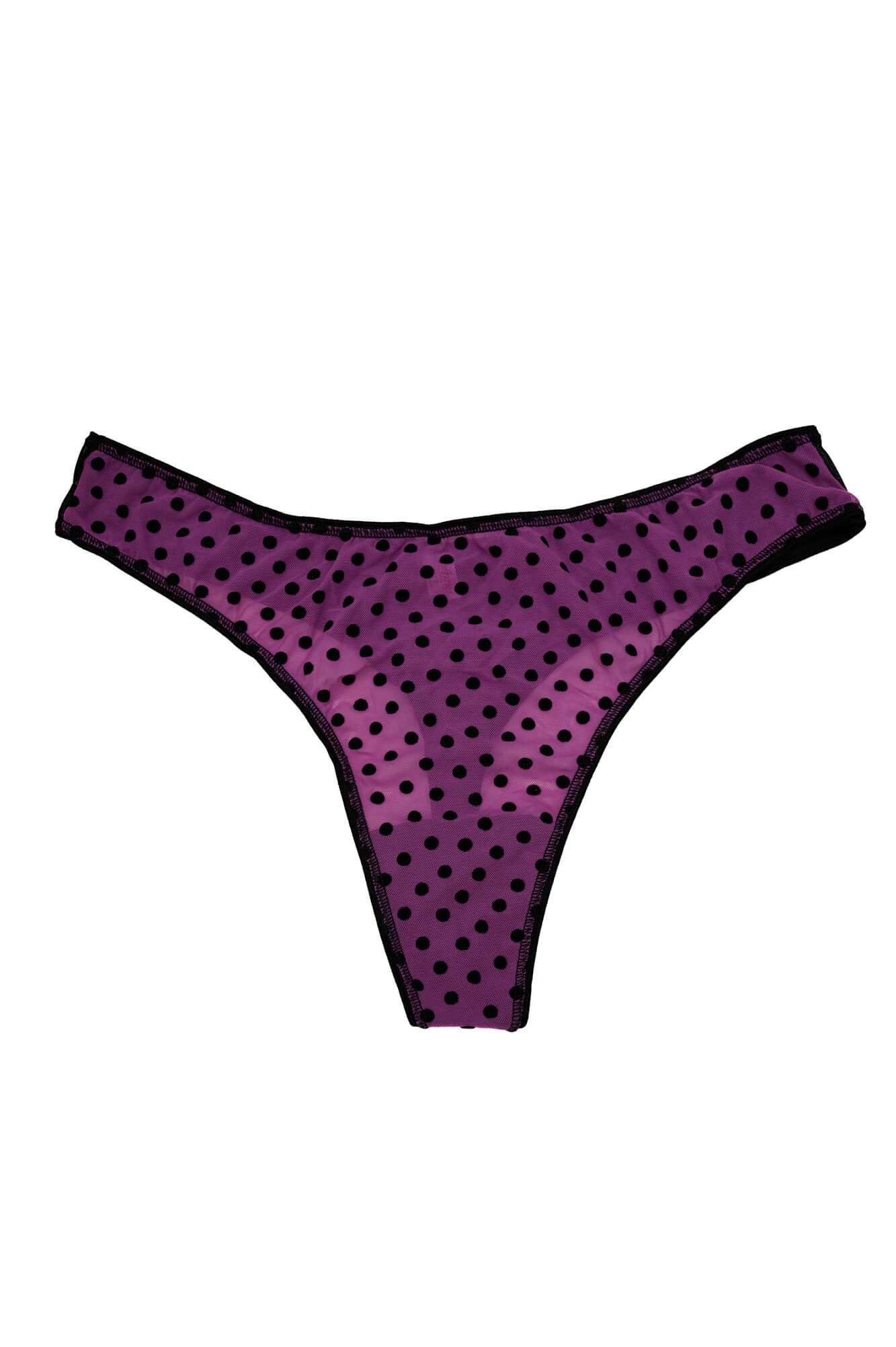 Σλιπ string με διαφάνεια. Πουά μωβ με μαύρο στο μπροστινό μέρος και μαύρο πίσω. Ιδανική εφαρμογή και αίσθηση άνεσης.