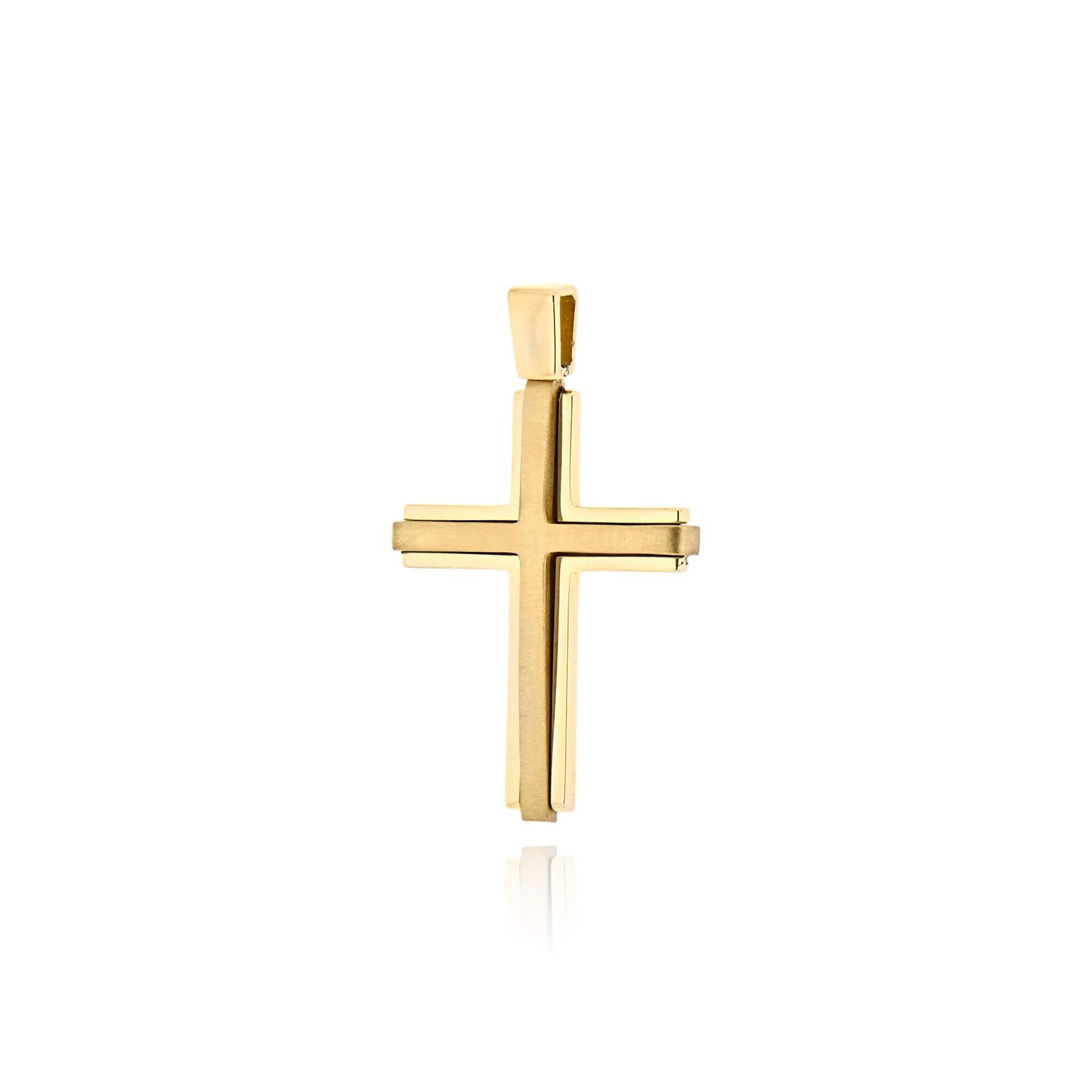Ένας κλασσικός σταυρός βάπτισης για αγόρι σε υπέροχη σύγχρονη εκτέλεση. Το διπλό φινίρισμα δίνει ένα γοηταυτικό αποτέλεσμα σε αυτό το κόσμημα της Val’Oro, κατασκευασμένο από κίτρινο χρυσό 14 καρατίων.