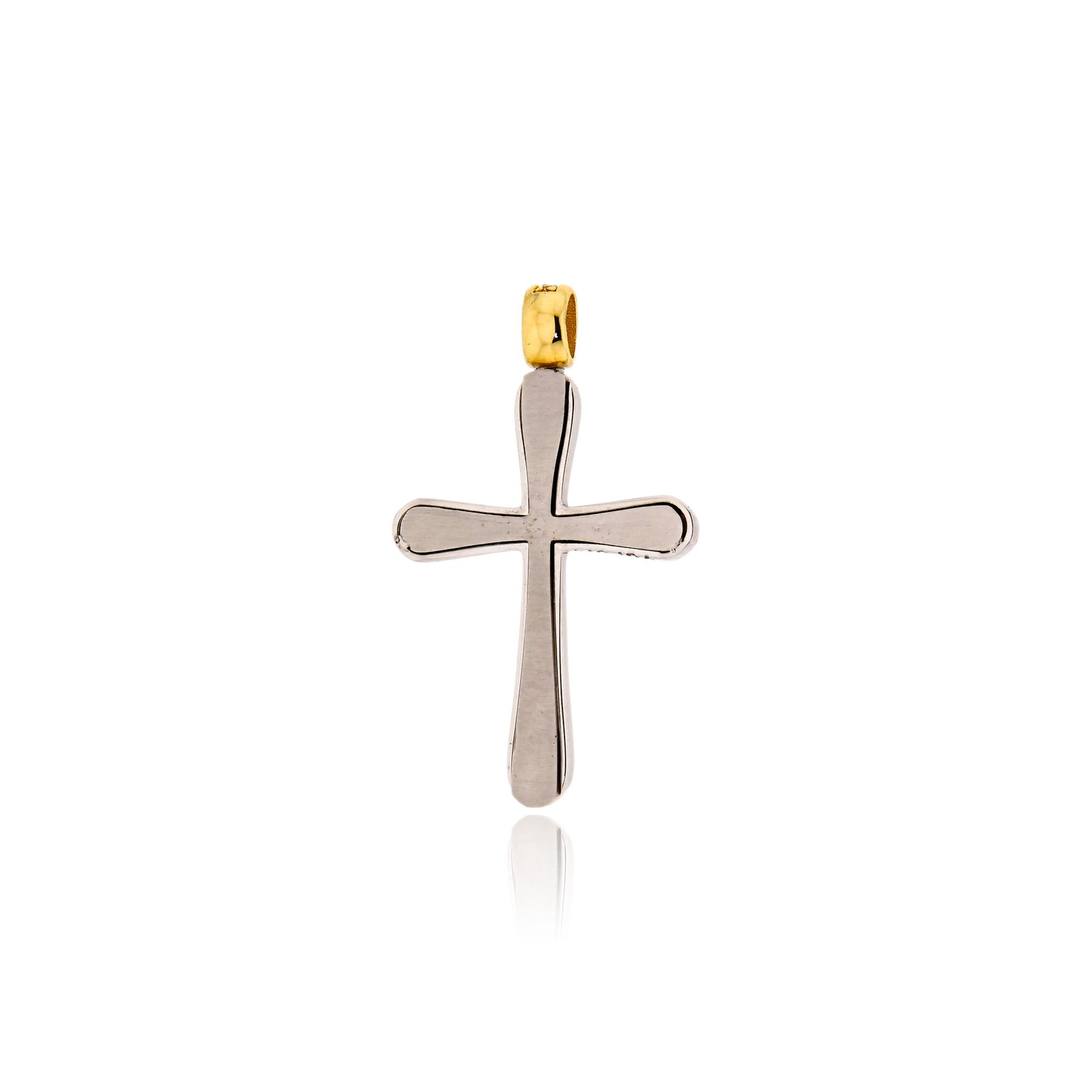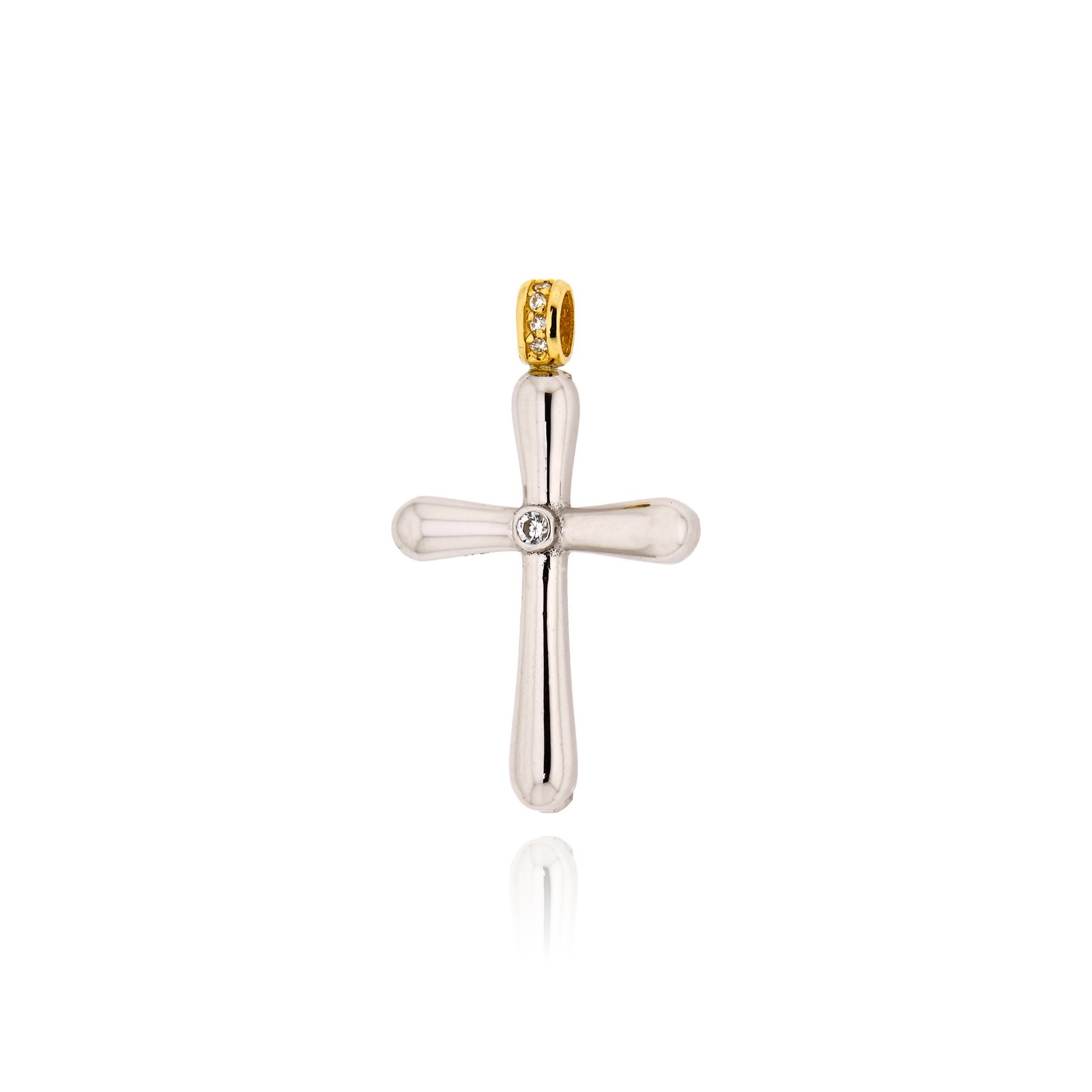 Σταυρός βάπτισης Val΄Oro για κορίτσι από λευκό και κίτρινο χρυσό 14 καρατίων. Ένα κλασσικό σχέδιο σταυρού χαριτωμένο με τη προσθήκη ζιργκόν στο κέντρο του κοσμήματος και στο κρικάκι που τον κάνουν πιο λαμπερό.
